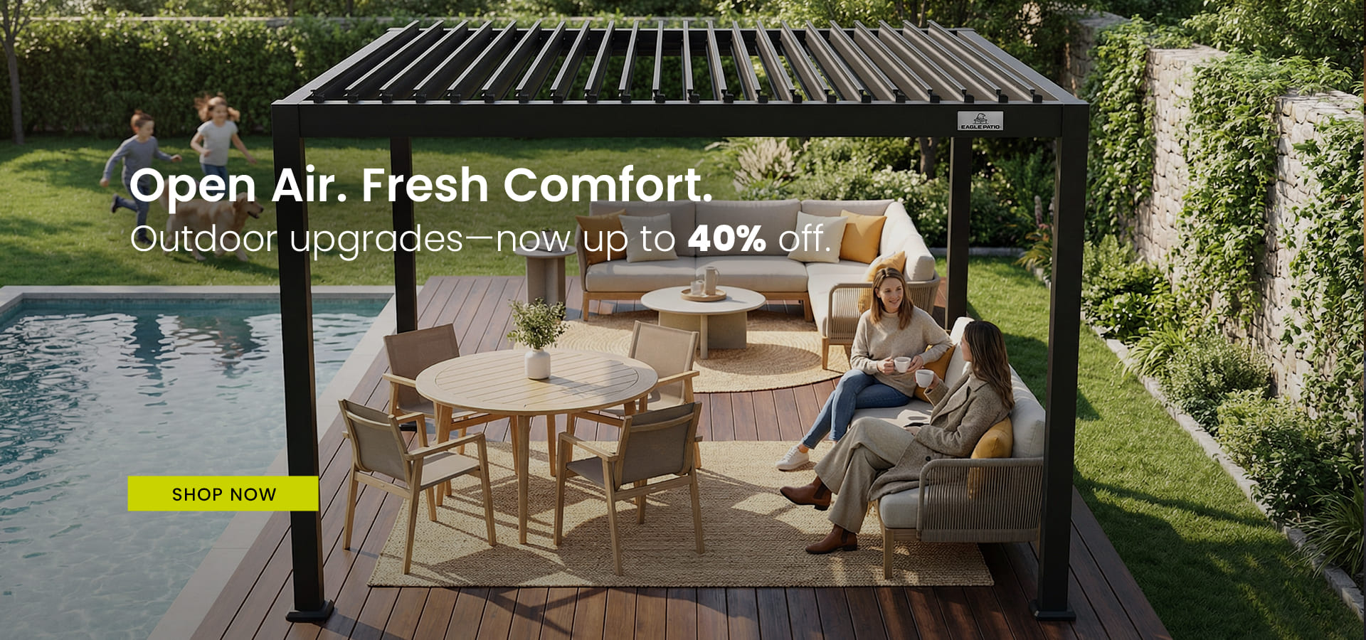 We design for today and tomorrow. At EaglePatio (formerly LuxPatio), we're integrating smart technology into our designs, so your backyard can be as intelligent as it is inviting. Think of it as your own outdoor haven, where comfort, beauty, and innovation come together to match your lifestyle perfectly.