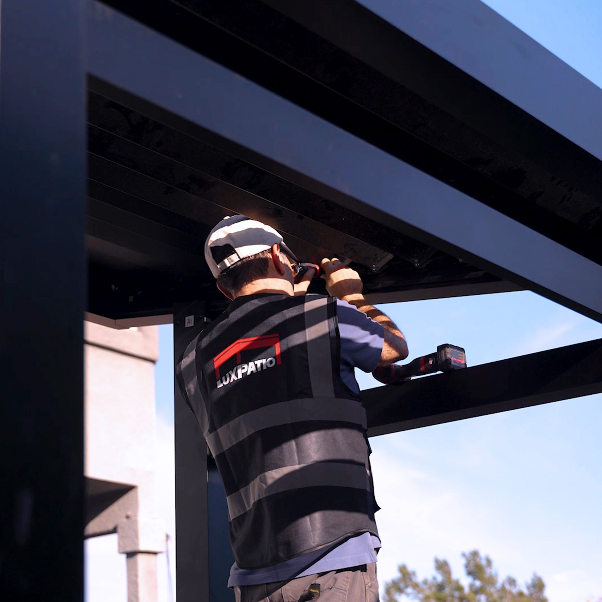 Someone will need to be present on-site to provide access and sign off once the installation is complete. Our professional team will handle the full assembly, securely anchor your pergola, and install all accessories.