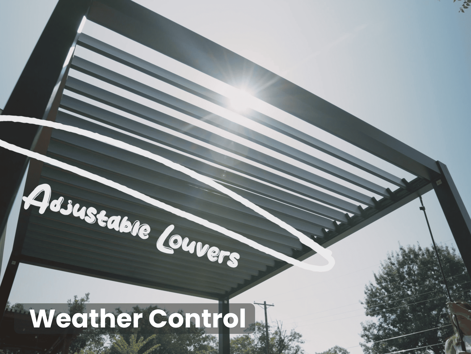Tilt the louvers open for sunlight and airflow, or close them for full shade and rain protection. Louvers are controlled by a smooth-turn hand crank. -